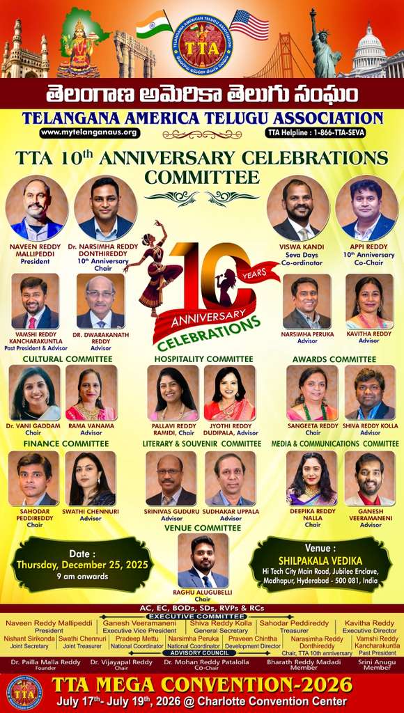 Read MoreThe Telangana American Telugu Association (TTA) is proud to announce the Mega Convention 2026, makin...